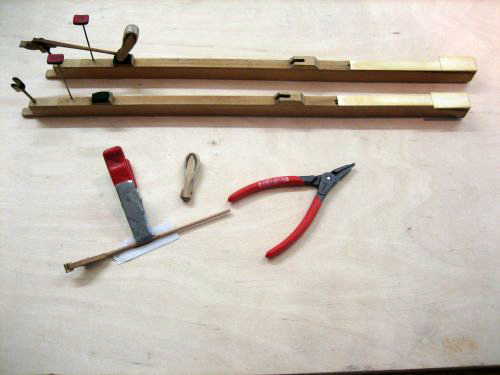 Der abgebrochene Hammerarm wird durch einen schräg abgeschnittenen Holzstab ergänzt.