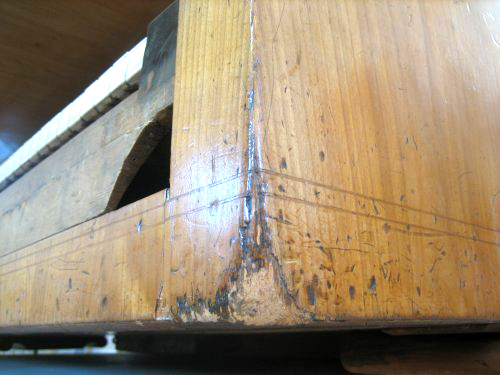 Stark beschädigtes rechtes Eck am Klaviergehäuse