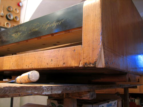 Ausnehmung für das ergänzende Blindholz, mit Stemmeisen gearbeitet