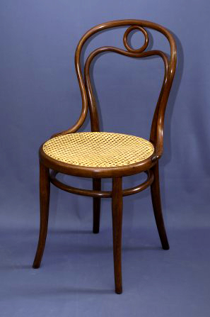 Unterseite Sitzrahmen, Prägestempel THONET Schutzmarke bzw. Etikett, THONET WIEN Sitzfläche mit Rohrgeflecht erneuert Gestell restauriert und mit Schellack poliert.
