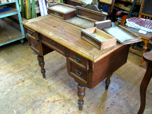 Historismus Schreibtisch vor der Restauration